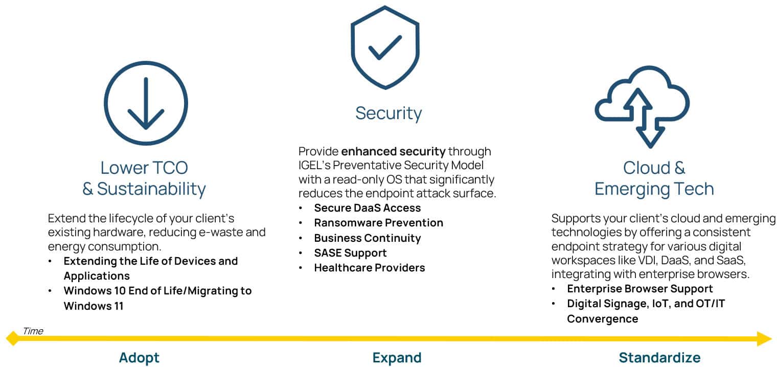 By partnering with IGEL, GSIs can help their clients adopt a modern endpoint operating system and application delivery strategy that helps solve these problems.