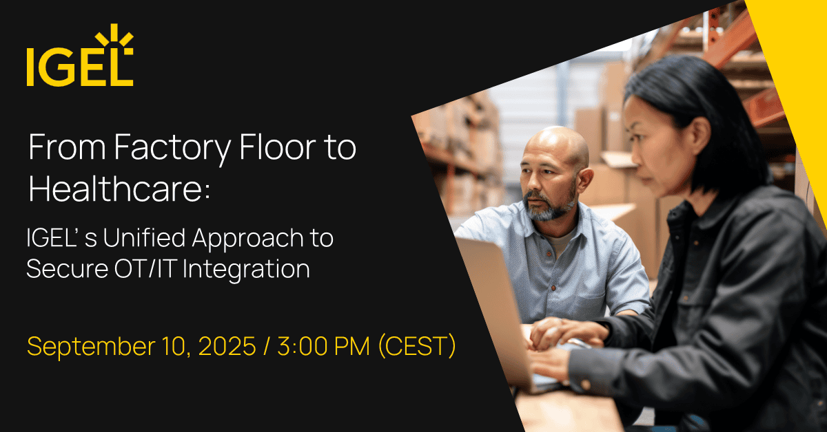 In this webinar, you’ll discover how IGEL bridges the gap between OT and IT with a secure, unified platform – purpose-built for environments that depend on both legacy reliability and modern flexibility.